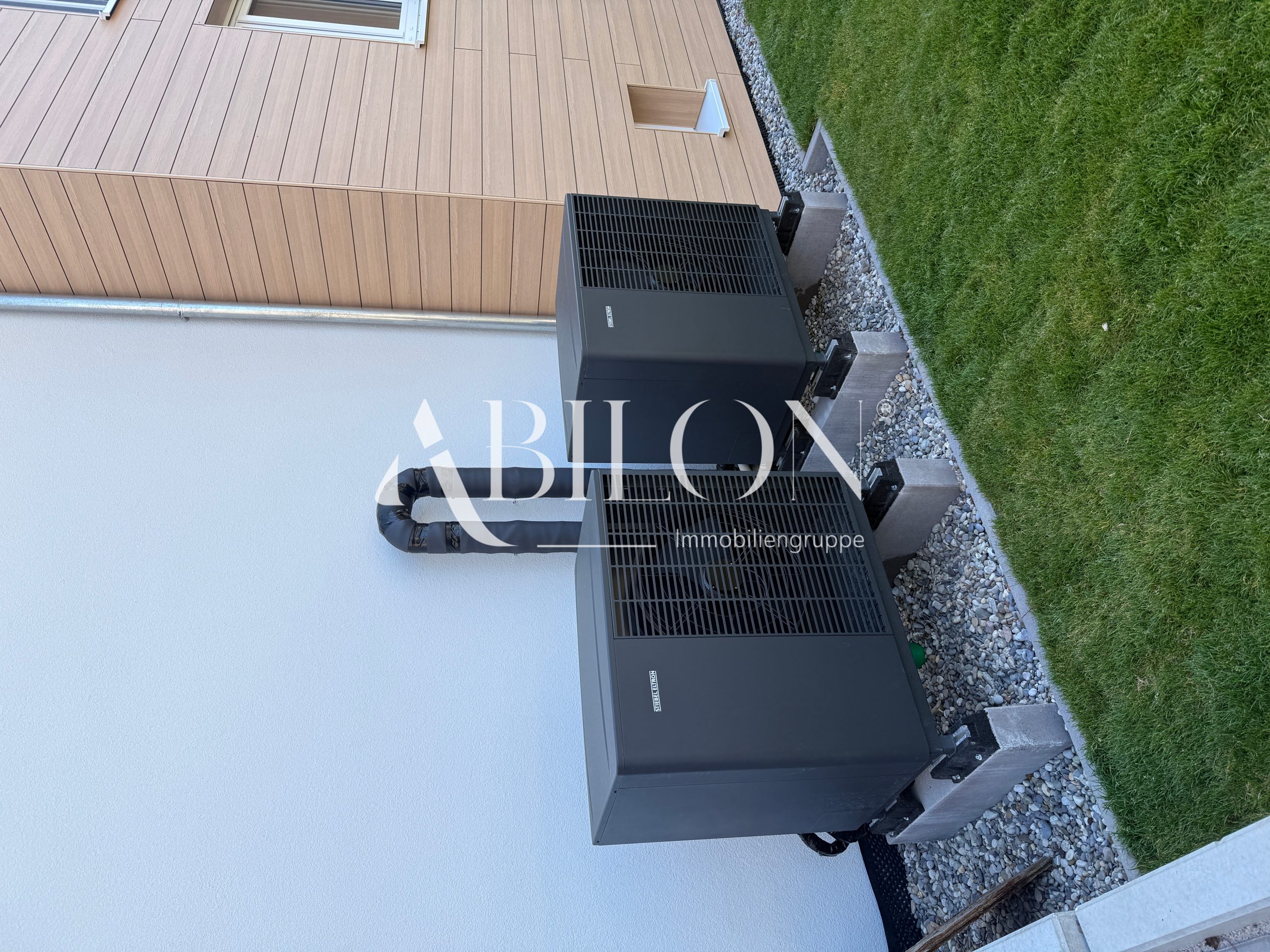 Moderne Energieeffizienz wird hier großgeschrieben: Eine zeitgemäße Luft-Wärmepumpe sorgt für ein angenehmes Raumklima und niedrige Betriebskosten das ganze Jahr über.